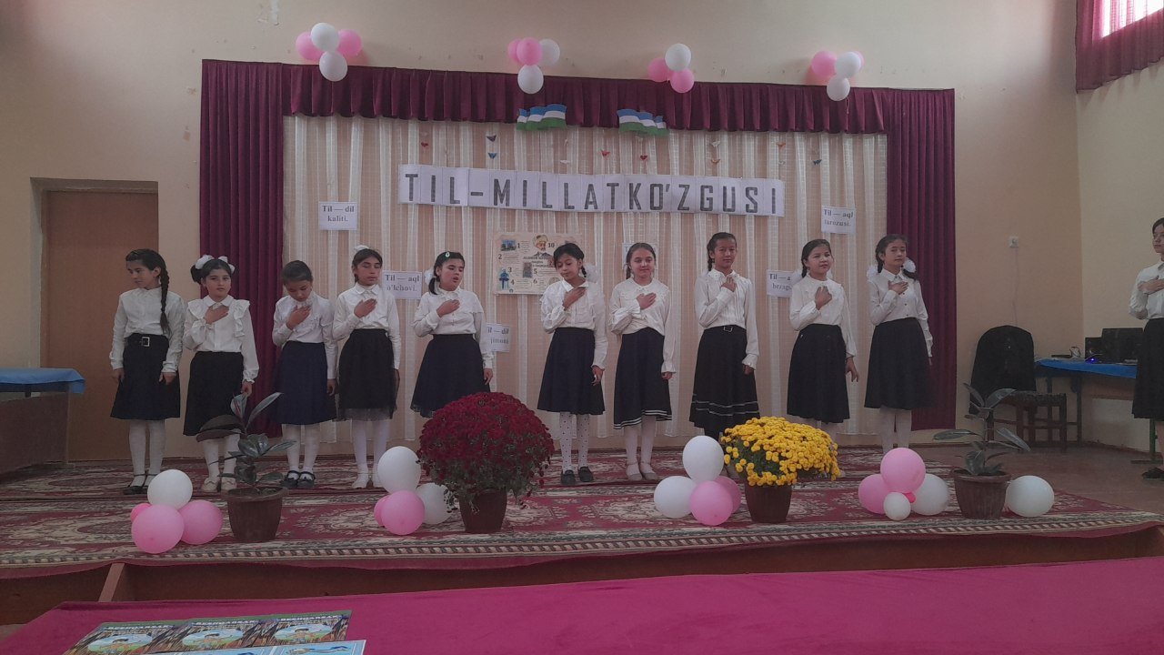 21-oktabr O'zbek tiliga "Davla tili maqomi berilganligining 34-yilligi" munosabati bilan 5-a. 7-a . 10-a sinf òquvchilari ishtirokida "Til-millat ko'zgusi"mavzusida тadbir bòlib òtdi.O'tkazilgan tadbirdan fotolavhalar.
